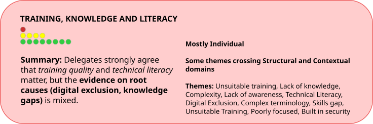 When it comes to "knowledge and literacy" in online security it's fair to say that both are generally lacking for most people. And this seems closely tied to the "someone else’s problem" attitude we discussed in the last theme. At first glance, the two feel inseparable.